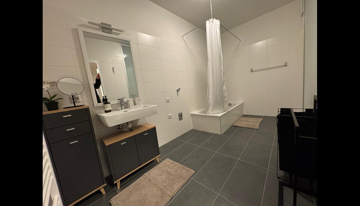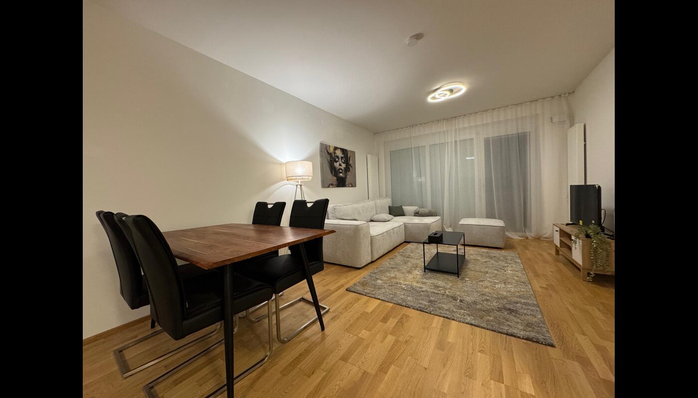 Modern 82 sqm apartment right next to Tulln train station: 2 bedrooms, spacious living room, balcony, designer kitchen, smart TV, Wi-Fi, free parking. Central location & guest discount at Khan’s BBQ!