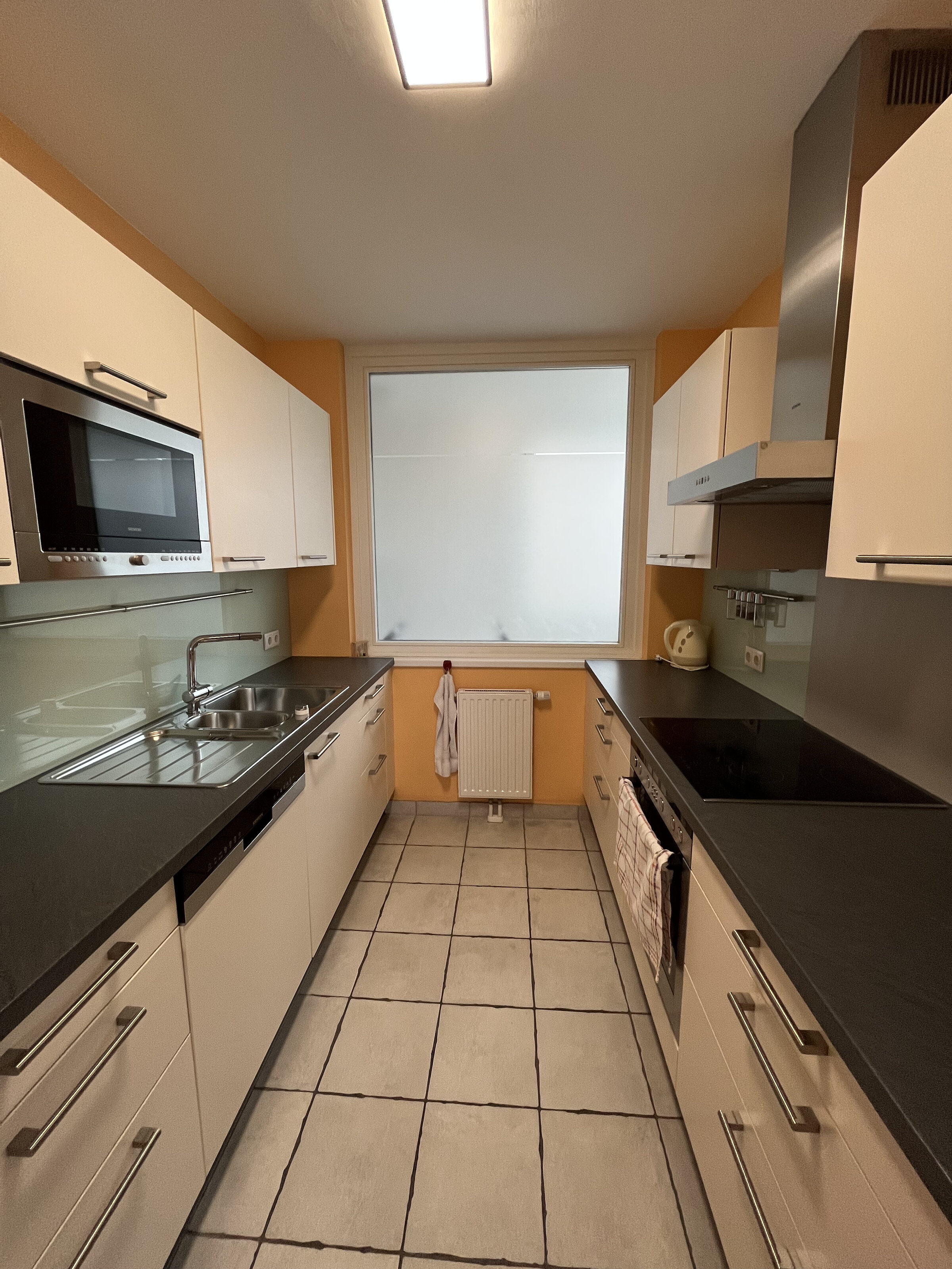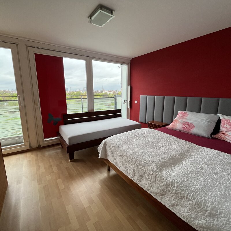 Beautiful apartment, fully furnished with fully equipped kitchen. Magnificent view over the Viennese skyline and the Augarten in a quiet location. Work possibility with good wifi available.