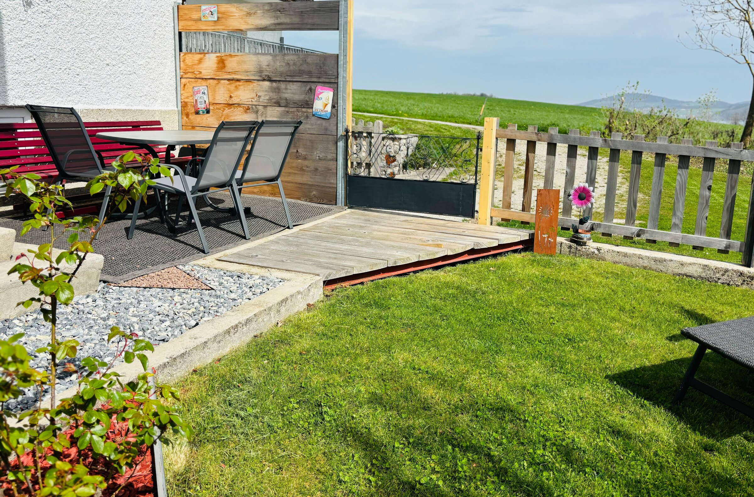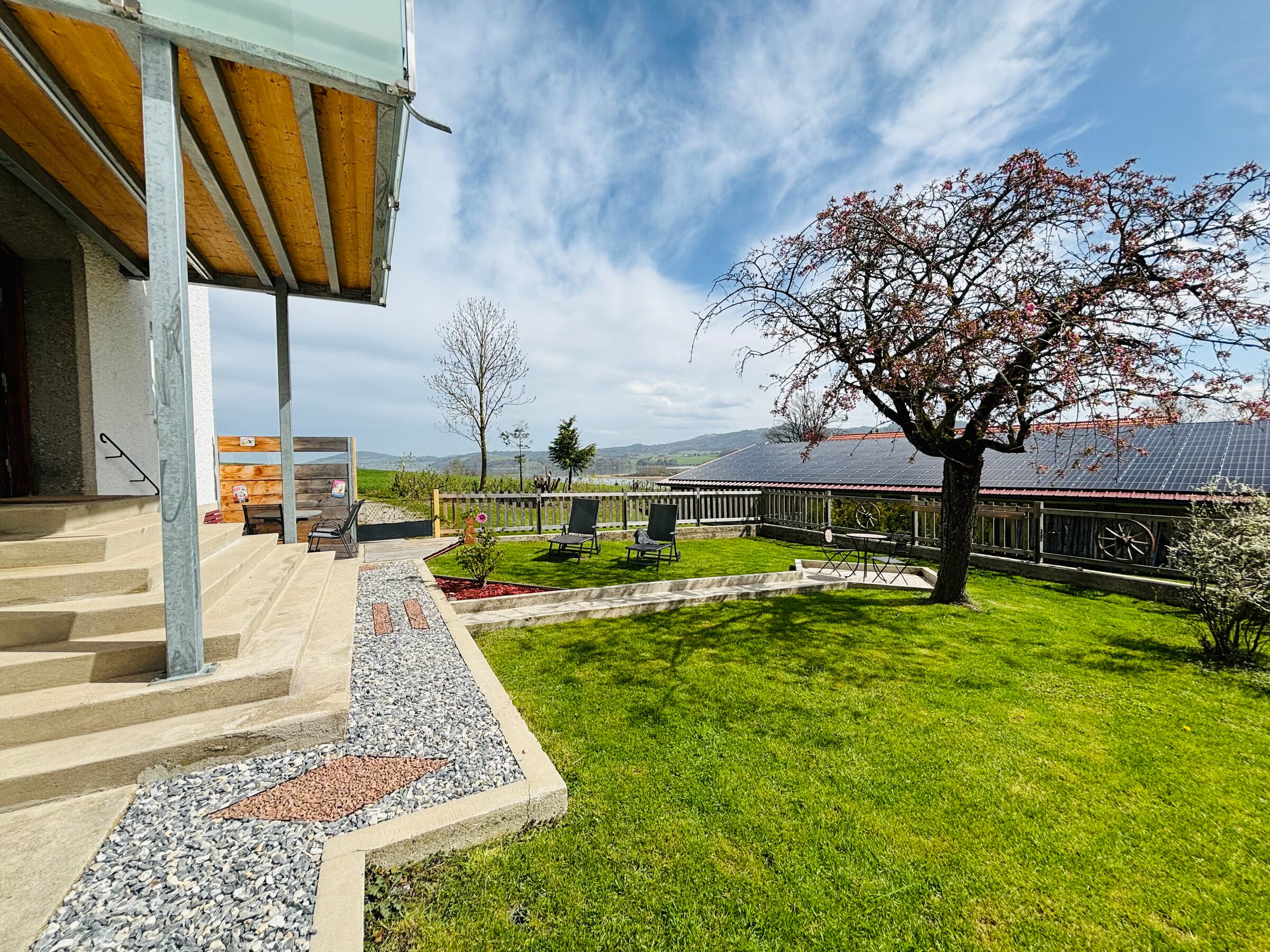 Cozy garden apartment in the "Seeblick" guesthouse with stunning views of Lake Wallersee and the mountains. Two bedrooms, fully equipped kitchen, modern comfort, and a large garden. Perfect for a relaxing stay near Salzburg.