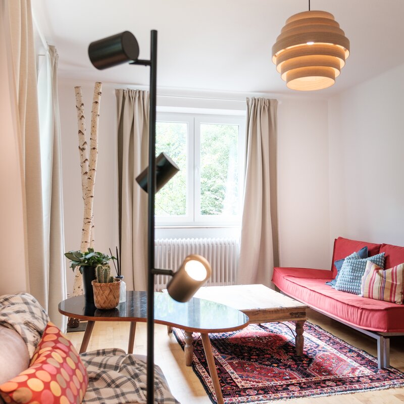 This stylish St. Gilgen apartment blends timeless modern charm with artistic accents. Steps from Lake Wolfgang, it offers mountain views, a peaceful brookside setting, and space for up to six guests—perfect for relaxing or working in the heart of Sal