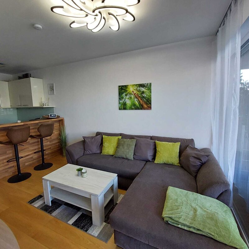 The apartment itself impresses with its modern equipment and offers a comfortable and cozy home. Bright, spacious rooms and high-quality furnishings ensure a pleasant living atmosphere.