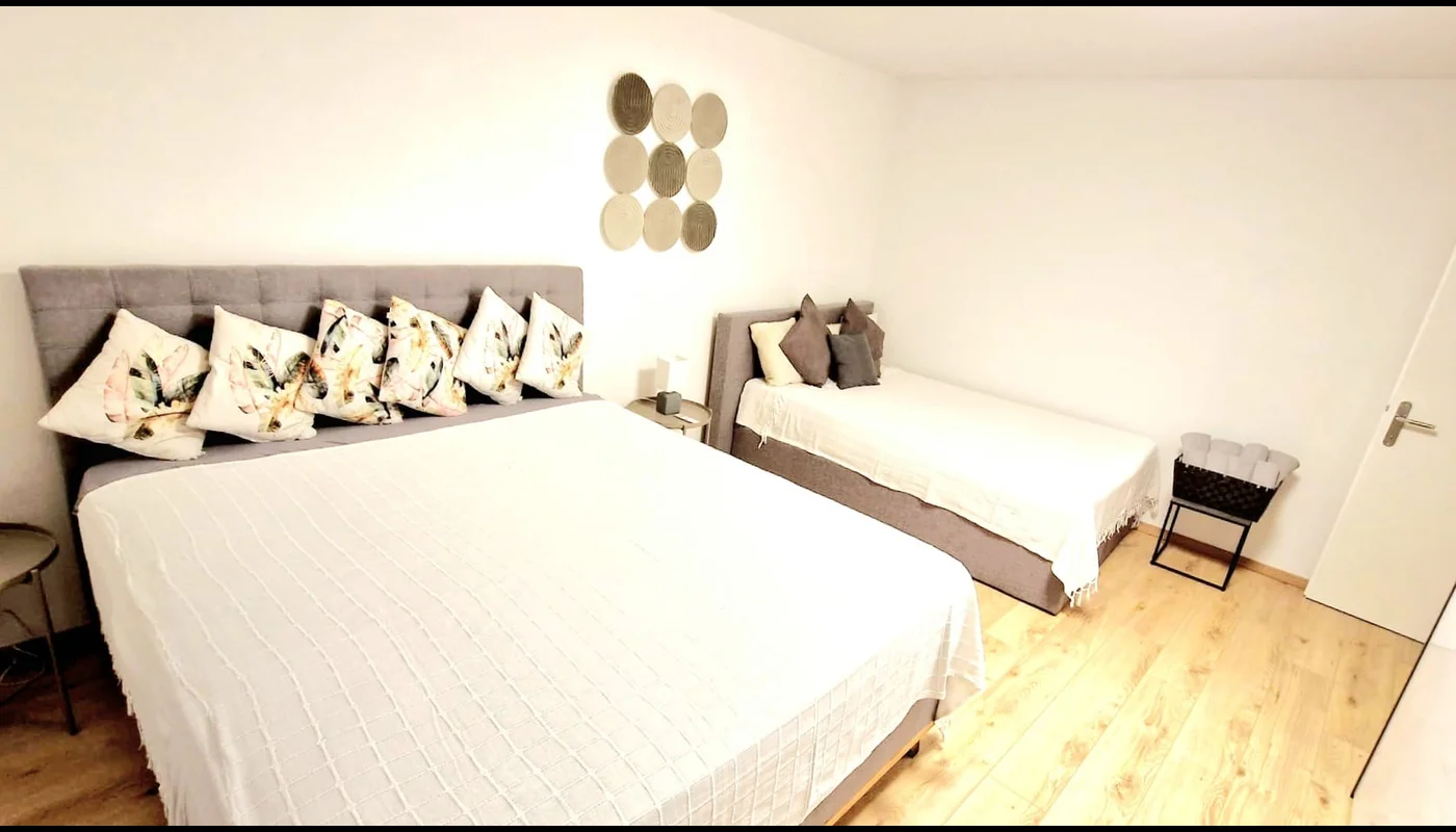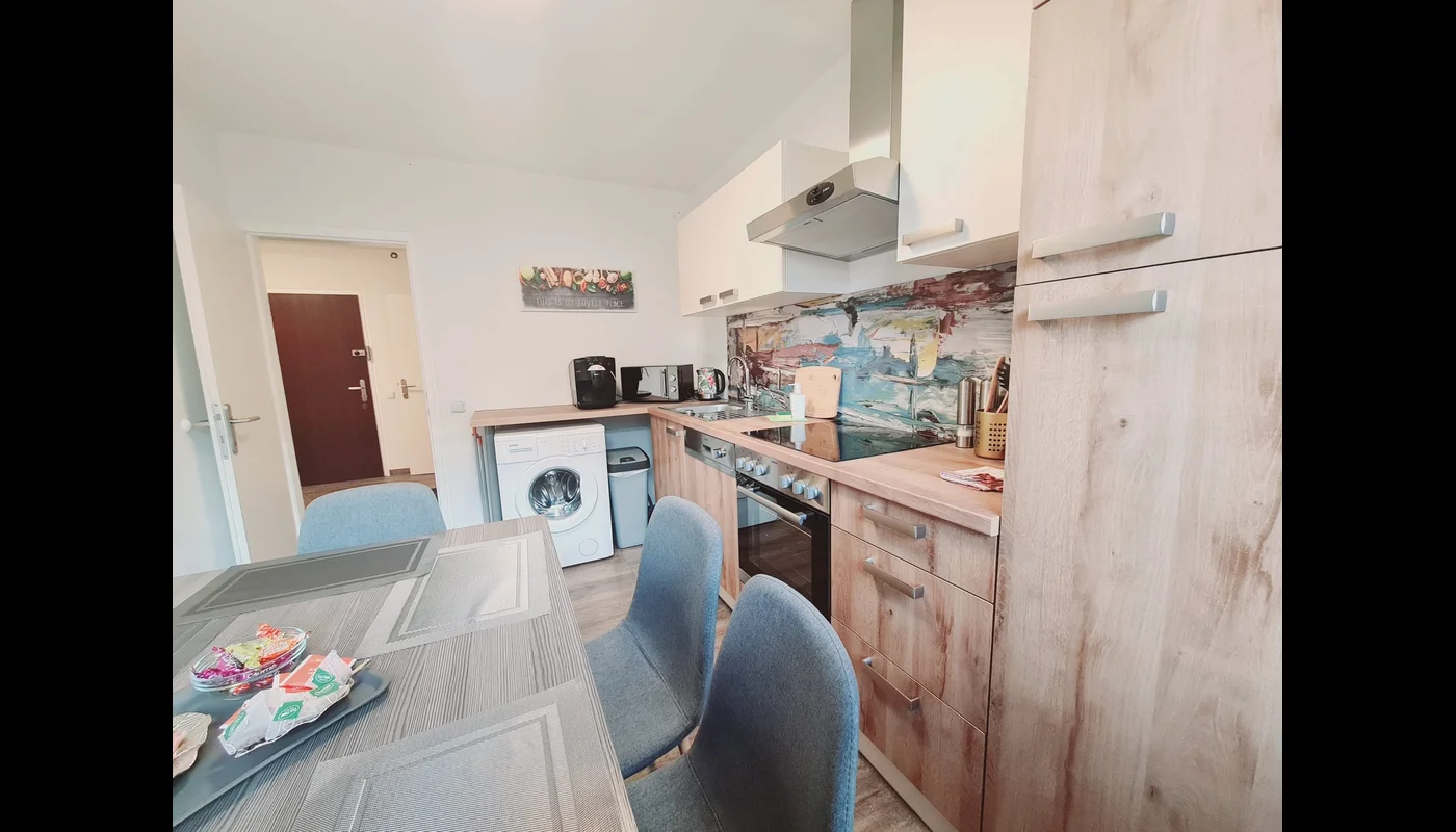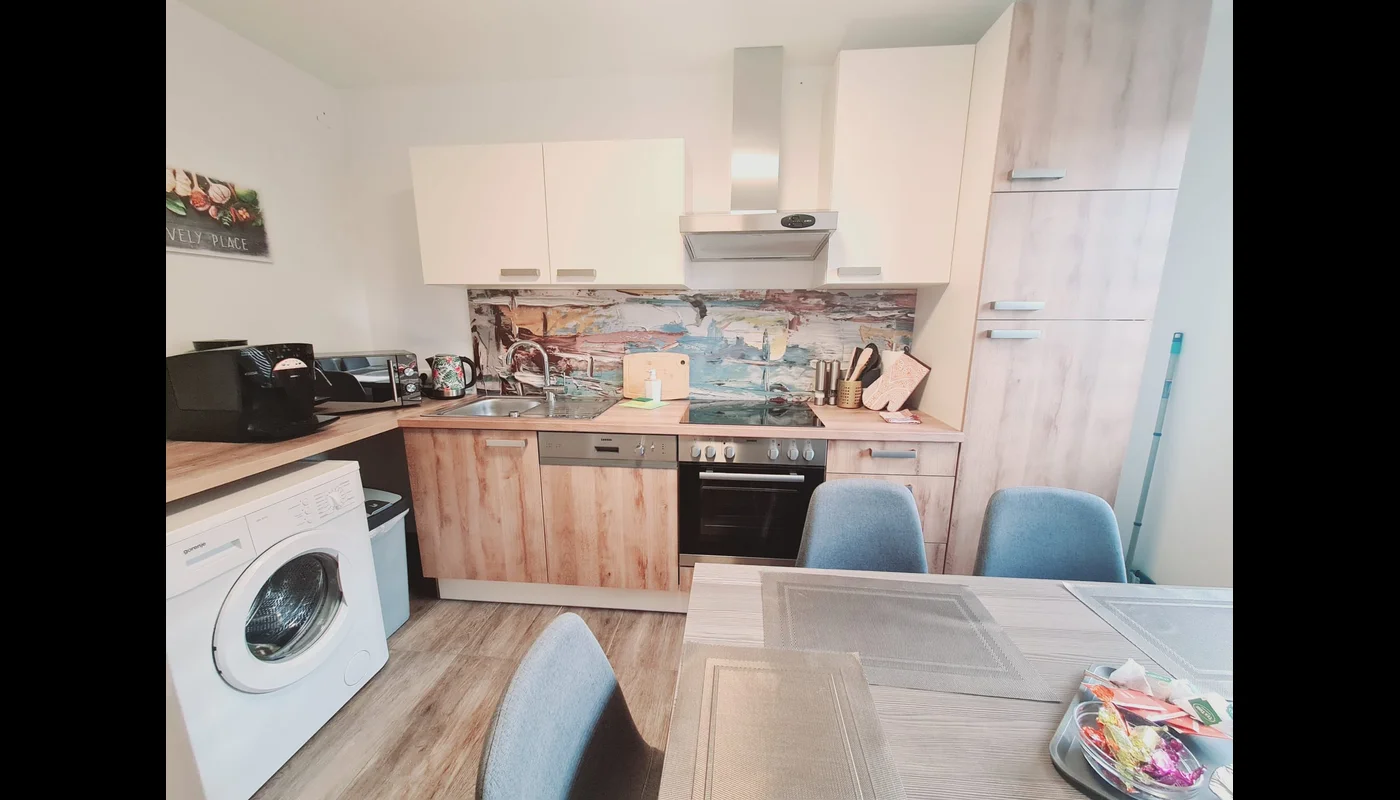 Sunny and friendly 3 bedroom apartment in the quiet area. The apartment is fully furnished and was completely renovated in December 2022. There is a green area directly in front of the apartment.