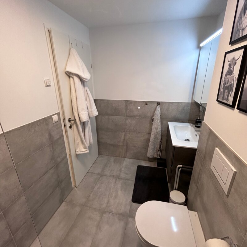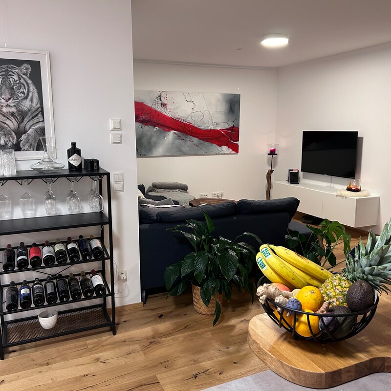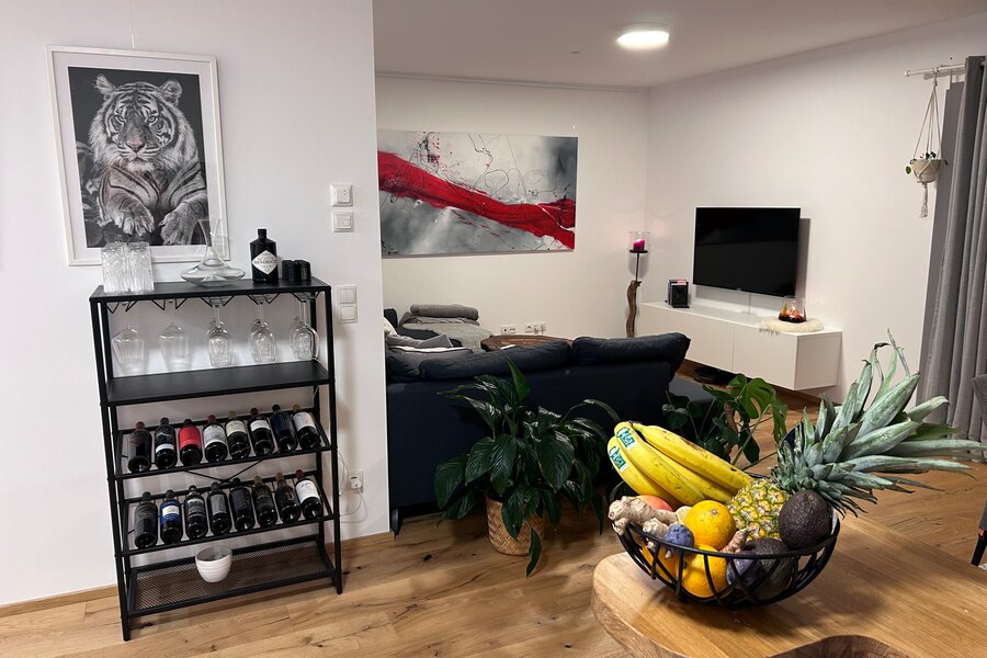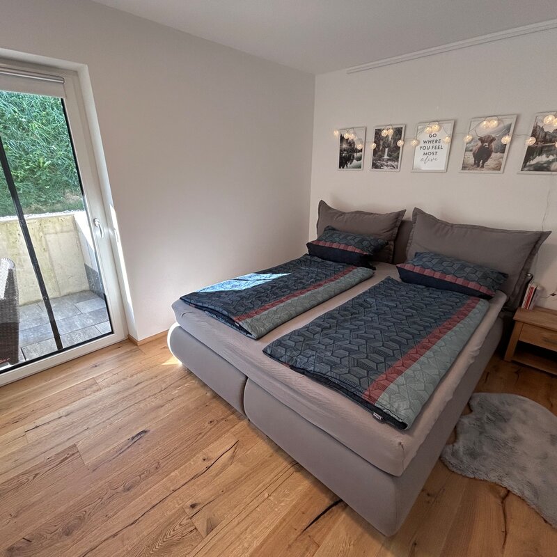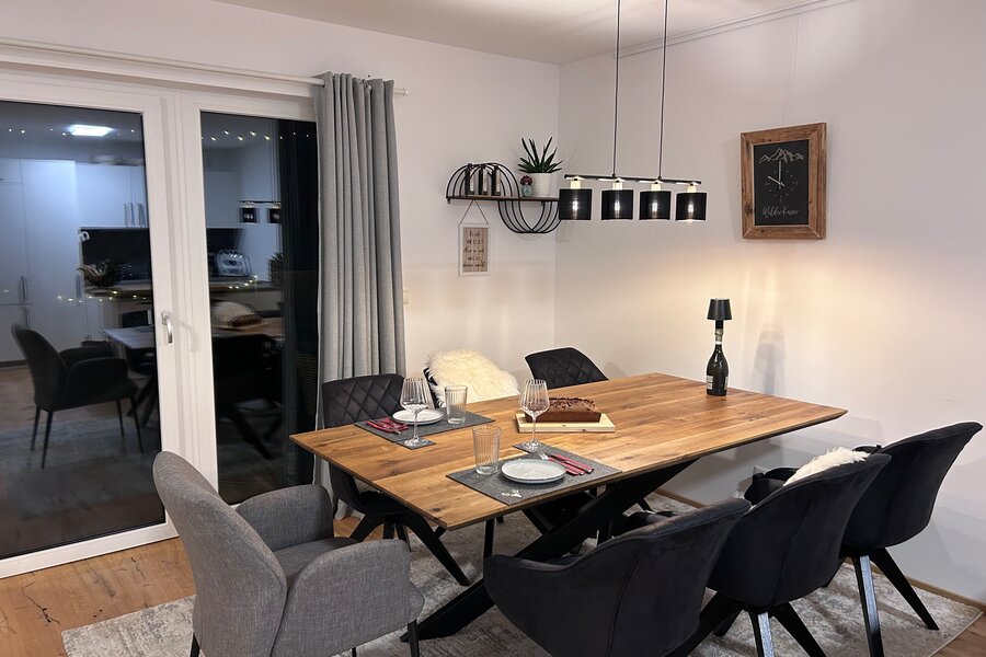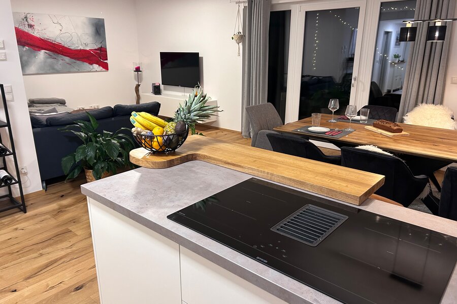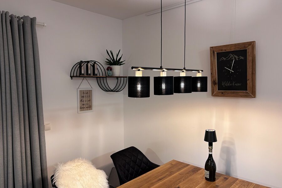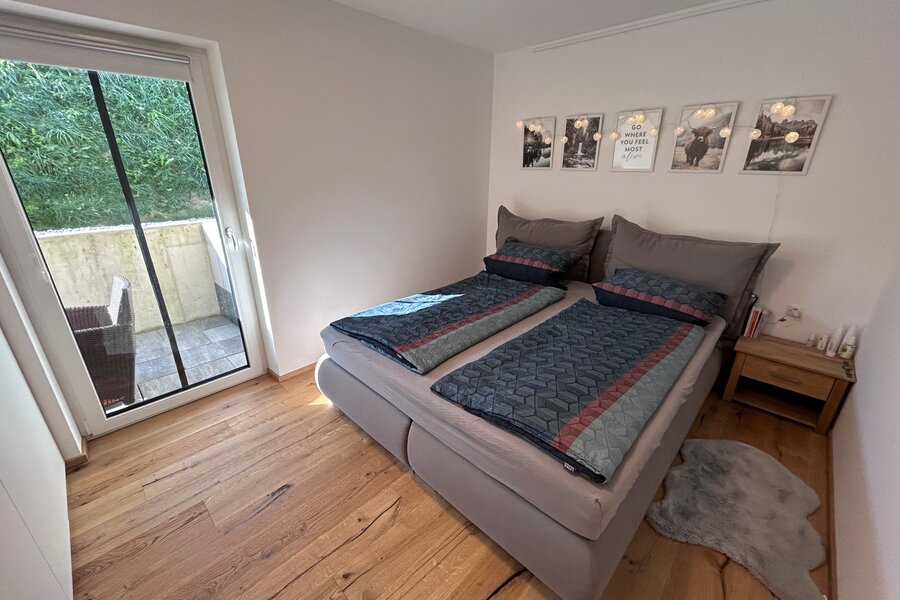The apartment is in a quiet location on the outskirts of Going. The next supermarket is just under 15 minutes away on foot, less than 5 minutes by car and the next larger ones are perhaps 2 minutes more.