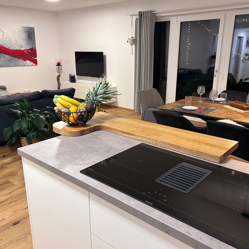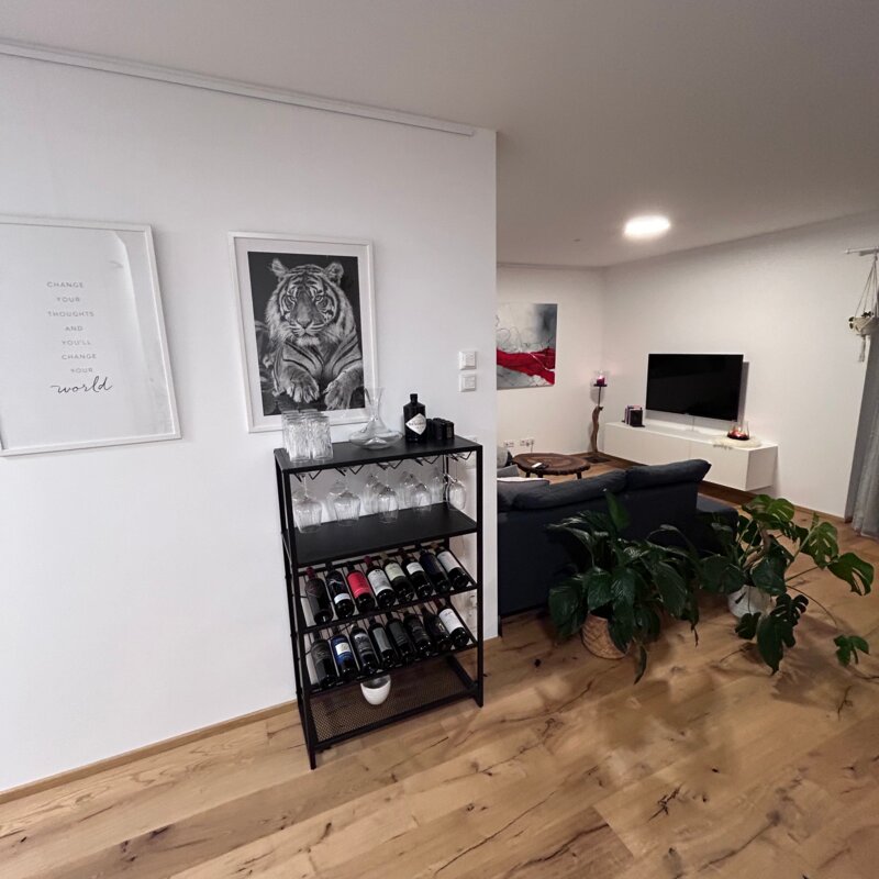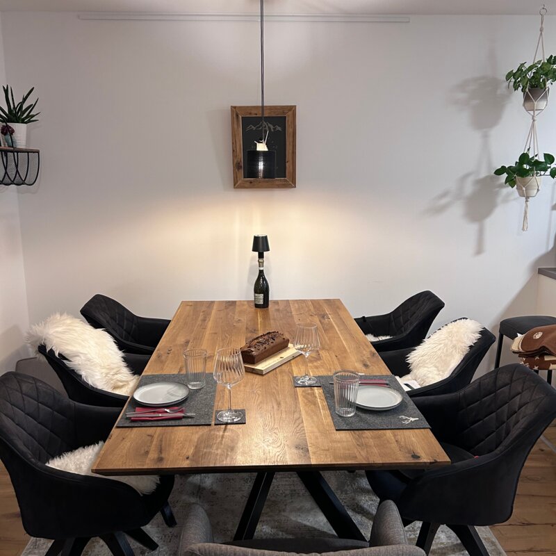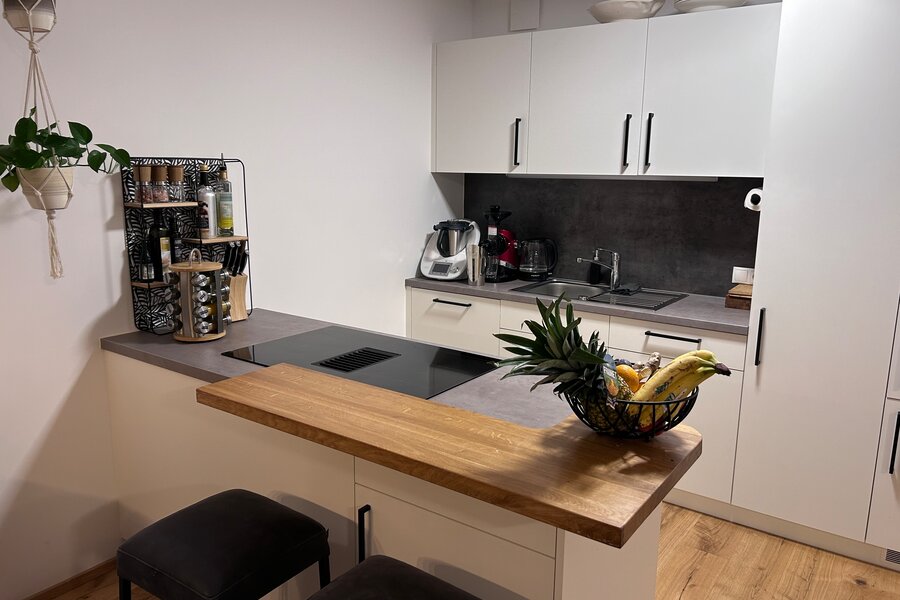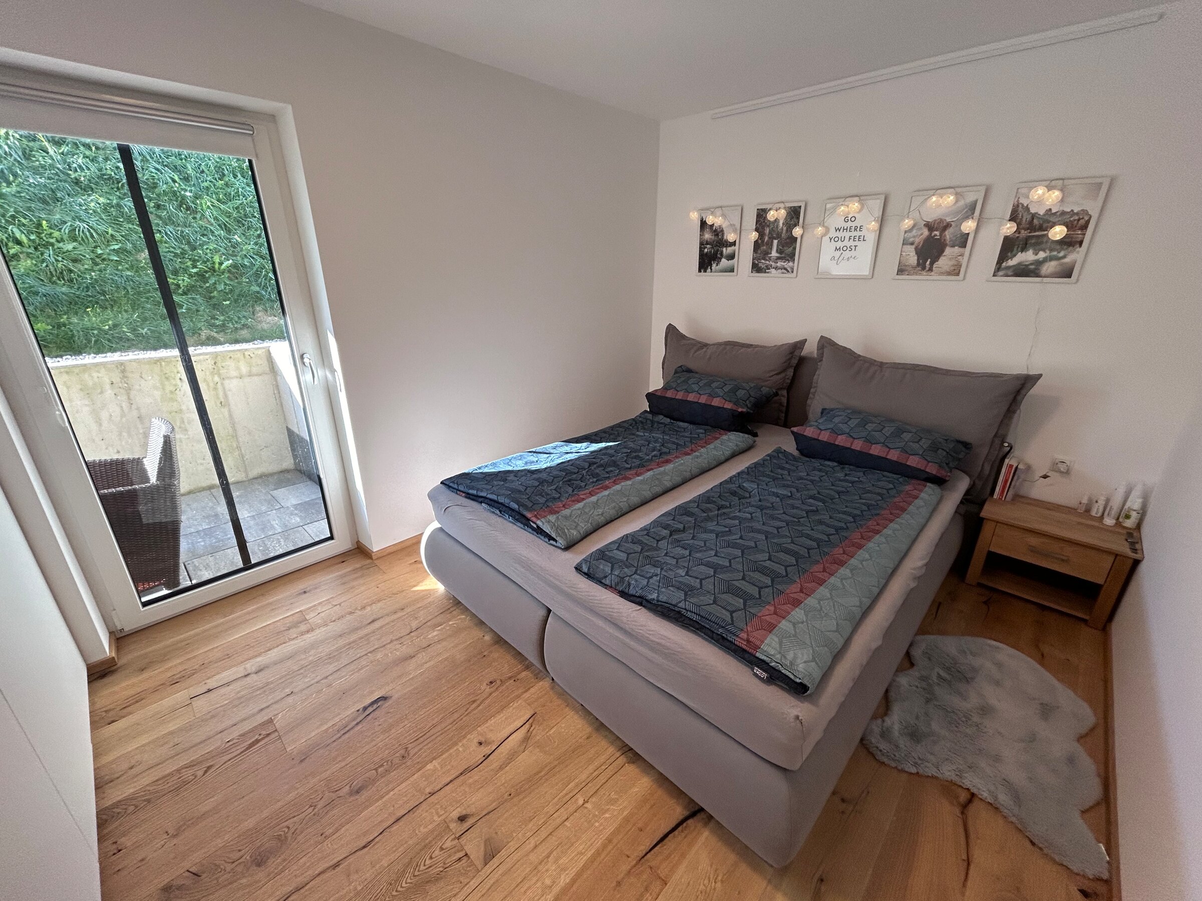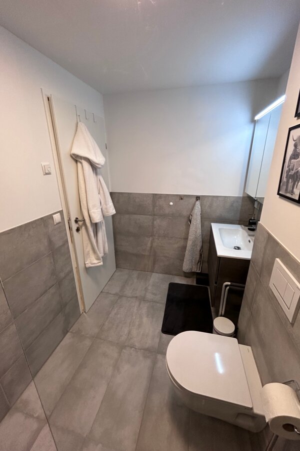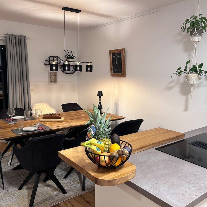 The apartment is in a quiet location on the outskirts of Going. The next supermarket is just under 15 minutes away on foot, less than 5 minutes by car and the next larger ones are perhaps 2 minutes more.