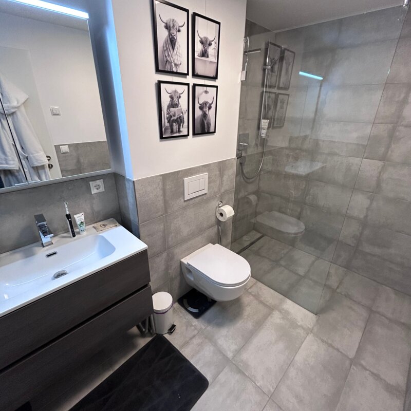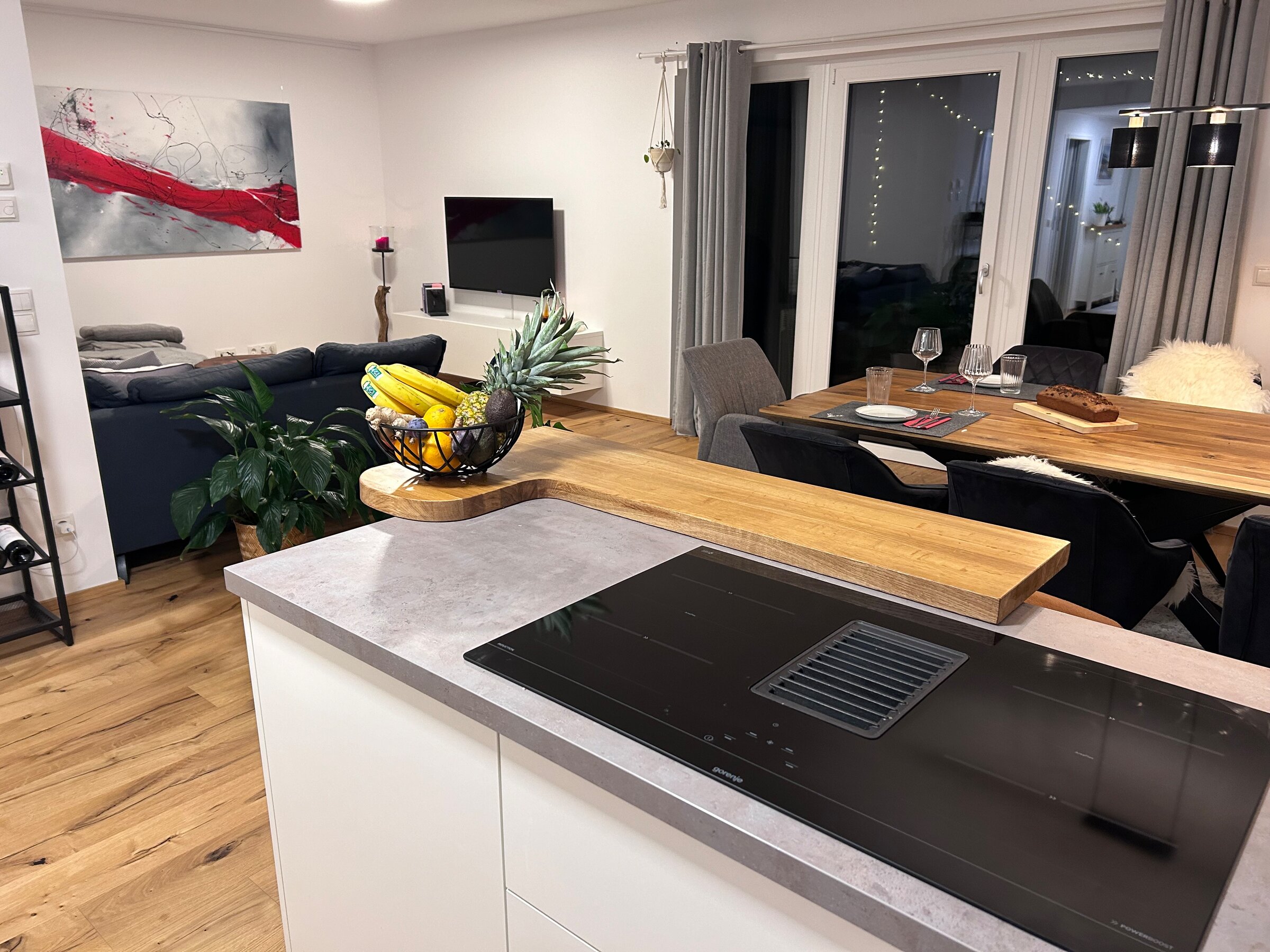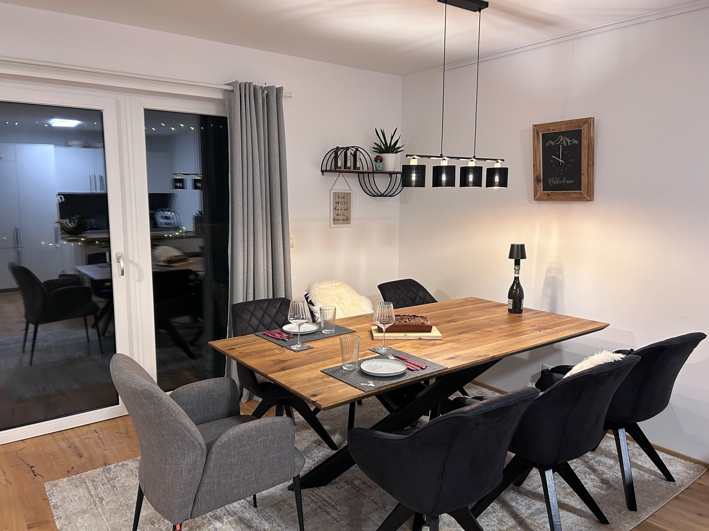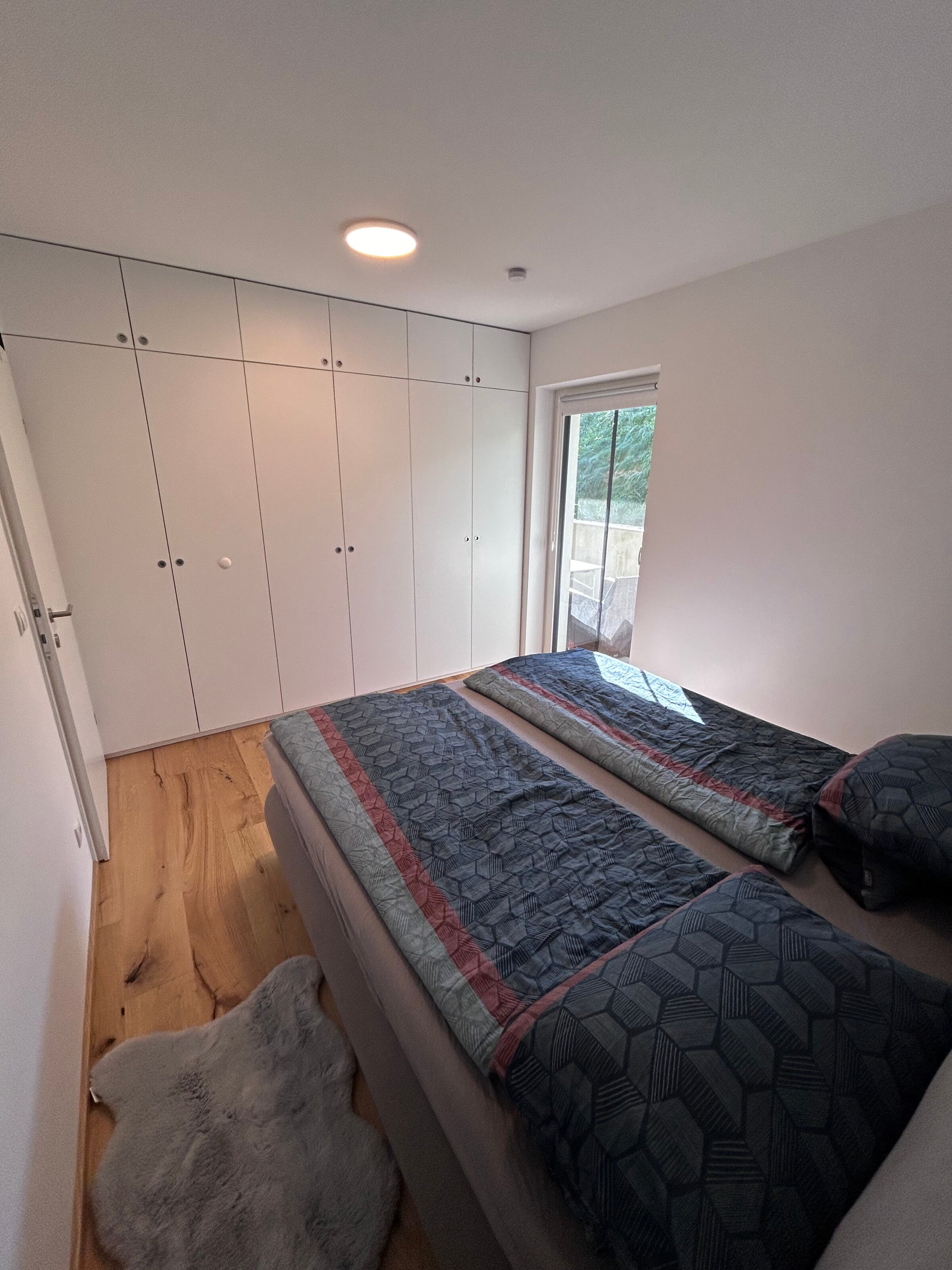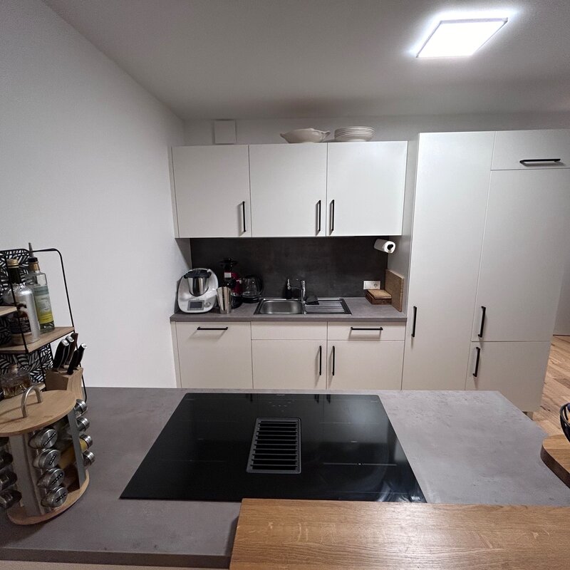 The apartment is in a quiet location on the outskirts of Going. The next supermarket is just under 15 minutes away on foot, less than 5 minutes by car and the next larger ones are perhaps 2 minutes more.