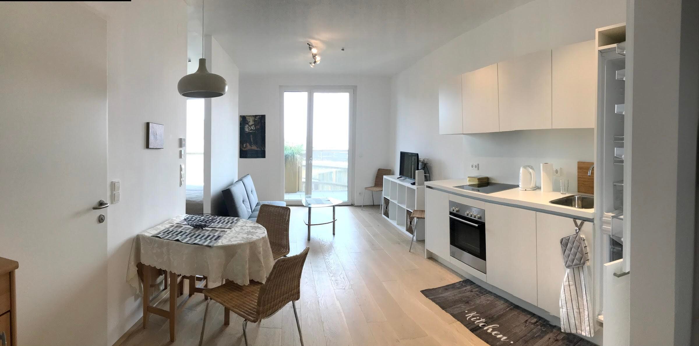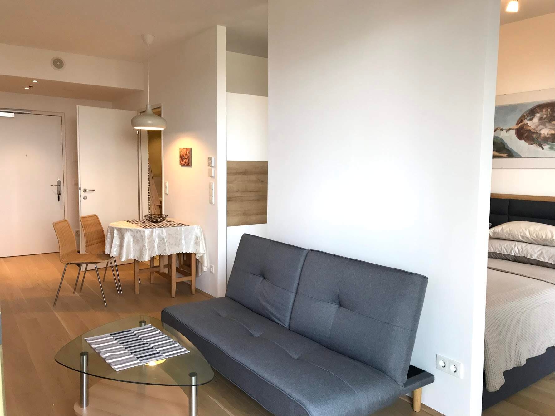 The apartment is in the middle of Quartier Belvedere, a new and up-and-coming neighborhood. Urban elegance, modern architecture and cool bars with great food define the Quartier Belvedere Central. Modern comfort in the immediate vicinity of the center (10-15 minutes on foot); 2min from Belvedere Palace.