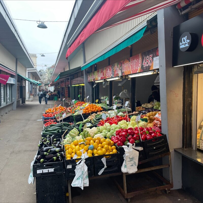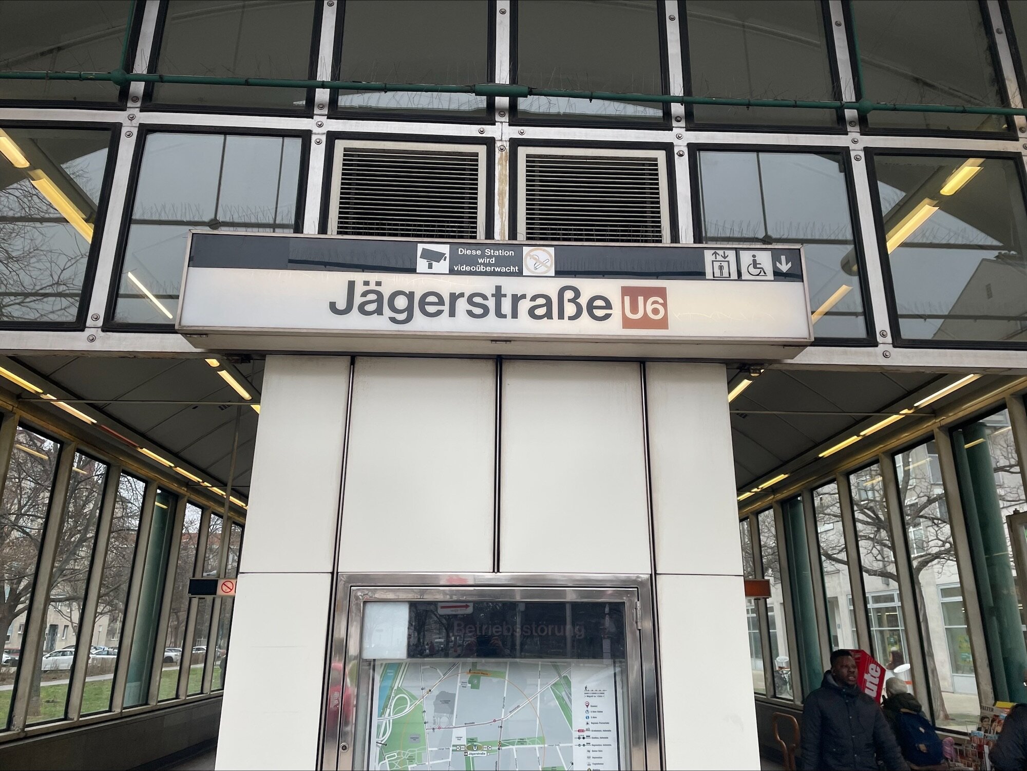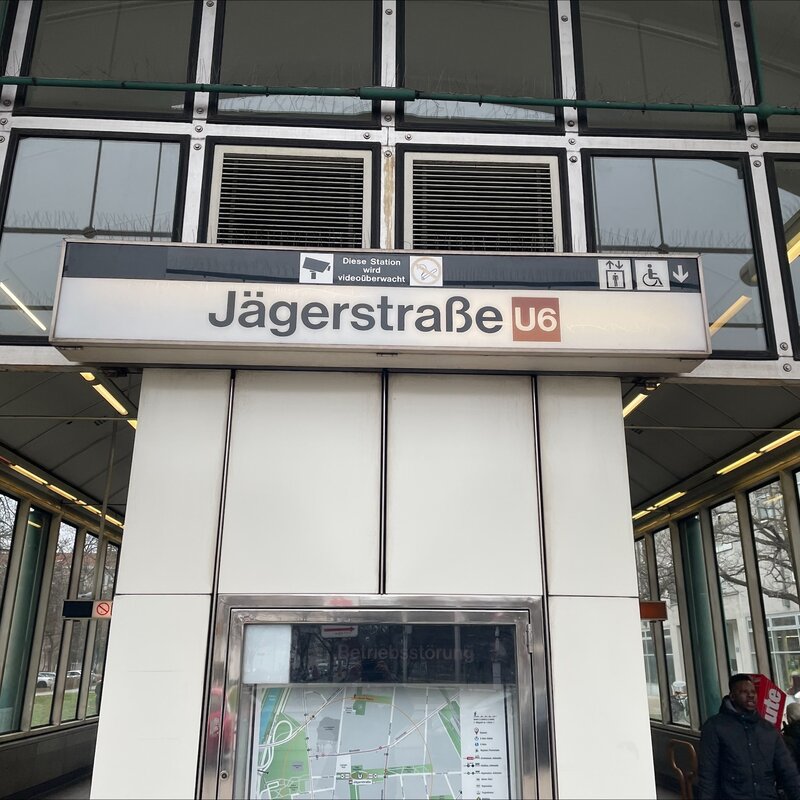The next metro station U6 Jägerstraße is just 3 minutes away. There you also find many supermarkets