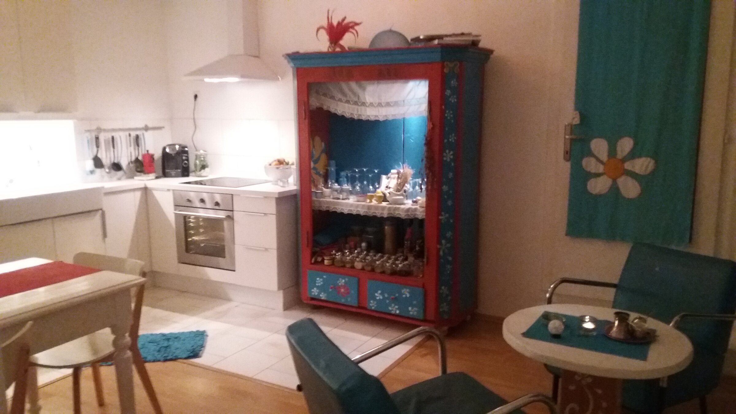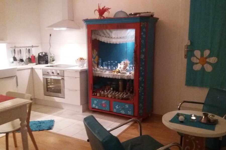 Kitchen with refrigerator, dishwasher and stove is equally available to guests. 8 euros per wash are charged for using the washing machine. Due to as little contact as possible, towels must be taken by the guests themselves during this time of the pandemic measures for reasons of hygiene. Linens are provided.