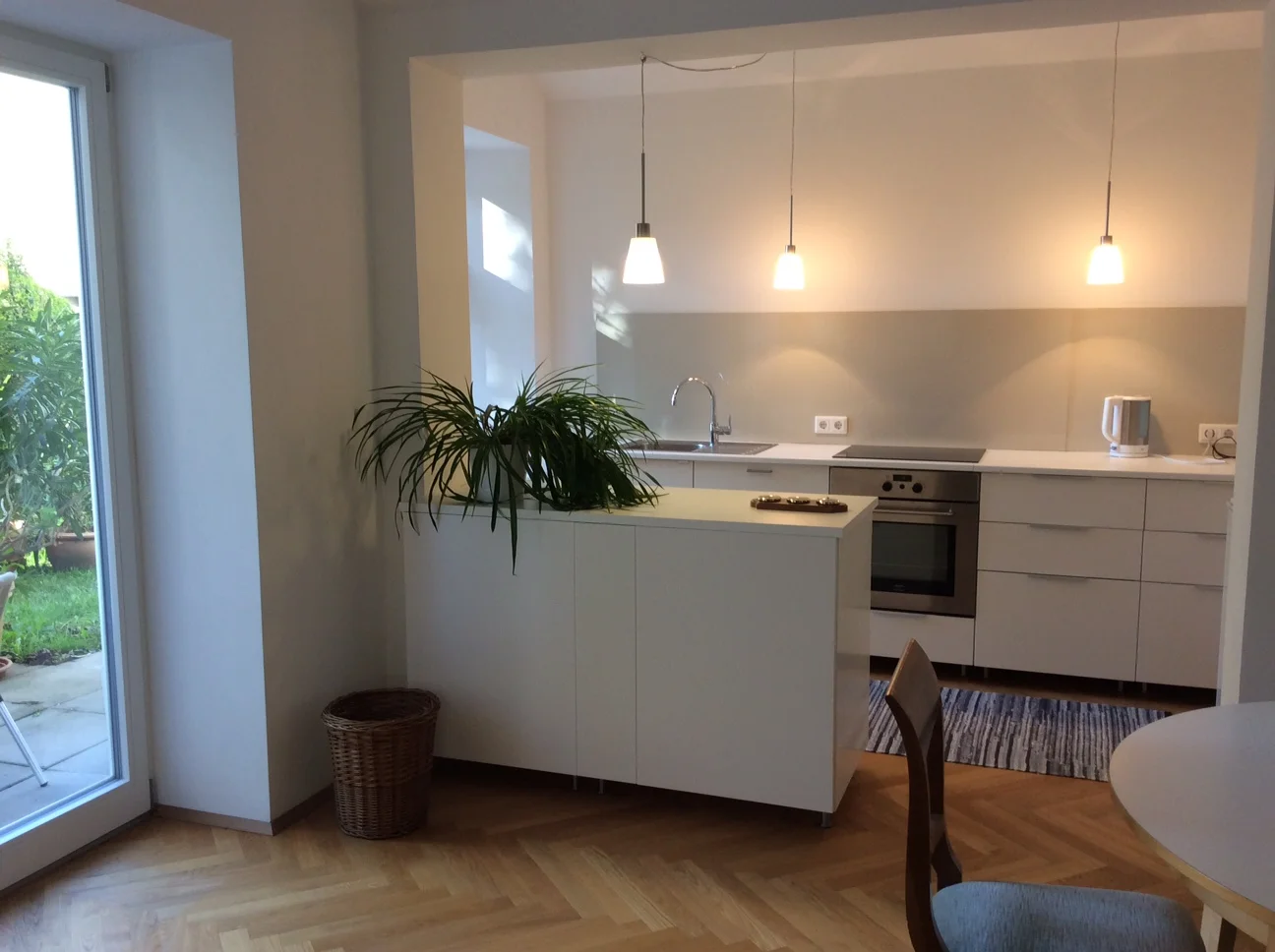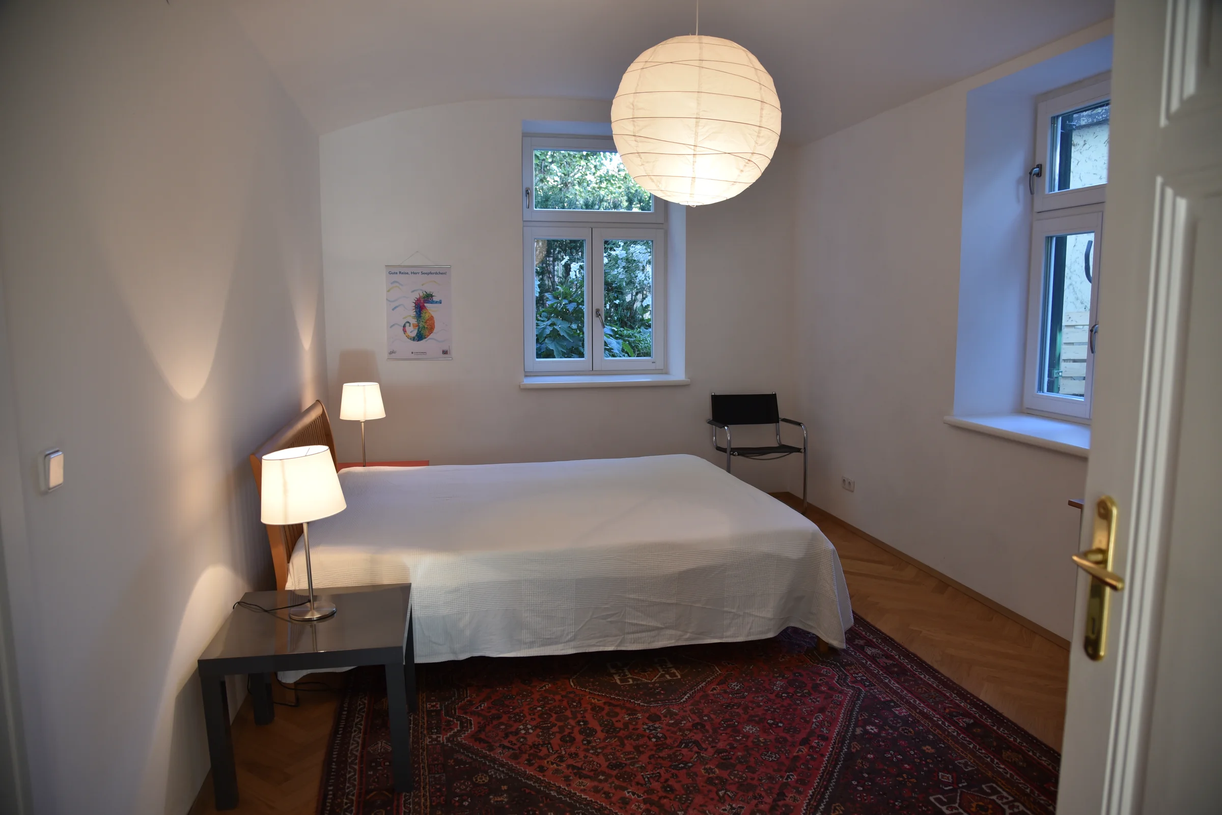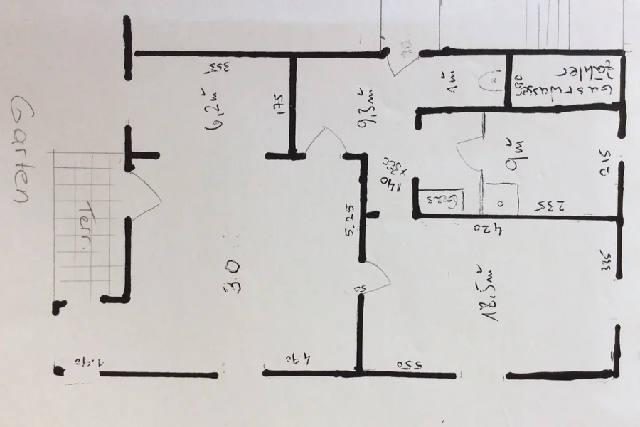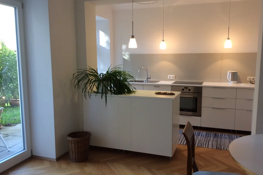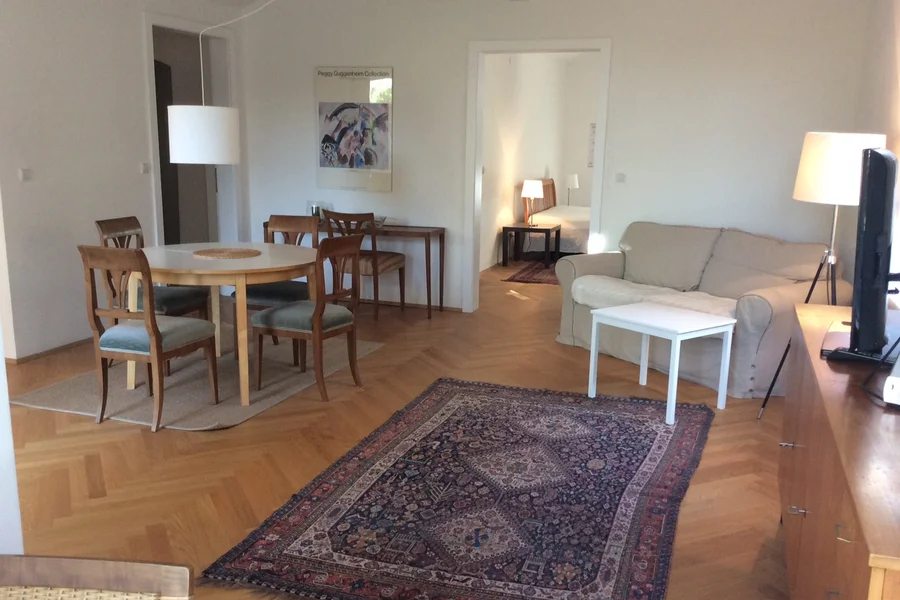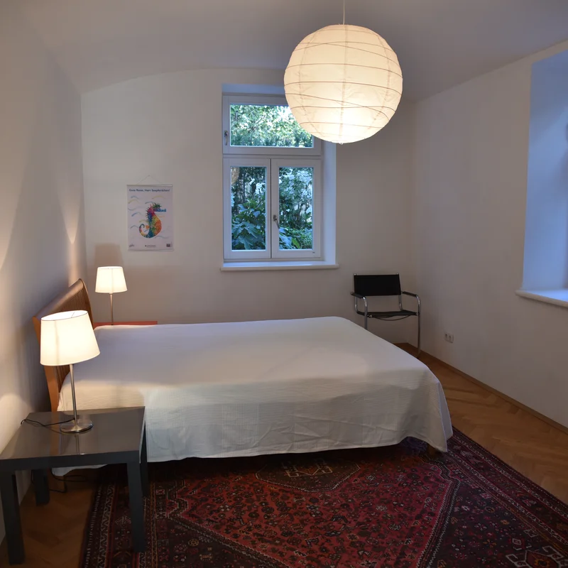 Beautiful, renovated old building apartment, 75m2, situated in a quiet green area in the villa quarter at the foot of the Ruckerlberg. Direct access to the garden, very good infrastructure, only 200m to tramway and bus, 20min walking distance to the