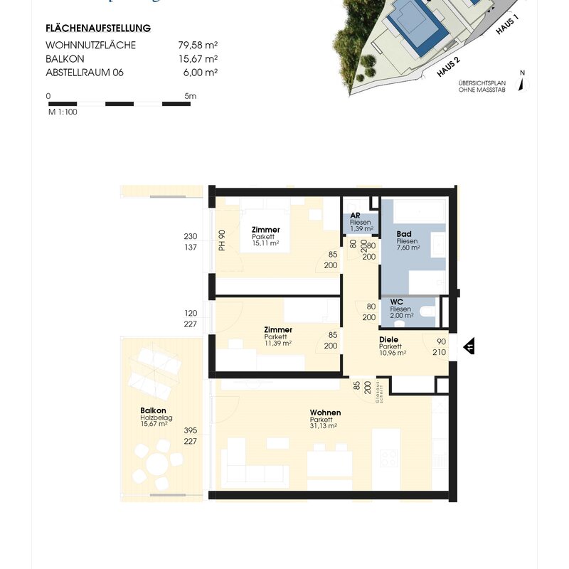 The residential complex has a private underground parking garage and a bicycle storage room. The center of Krumpendorf is nearby, and there are good train and bus connections to Klagenfurt and Villach. Supermarkets are also within walking distance.