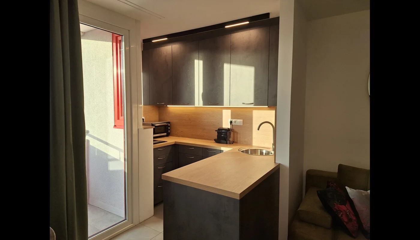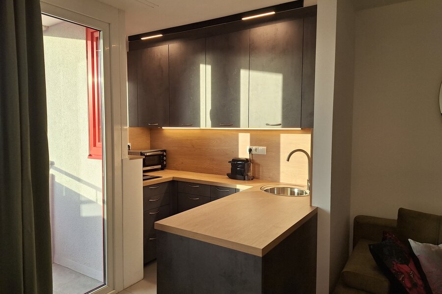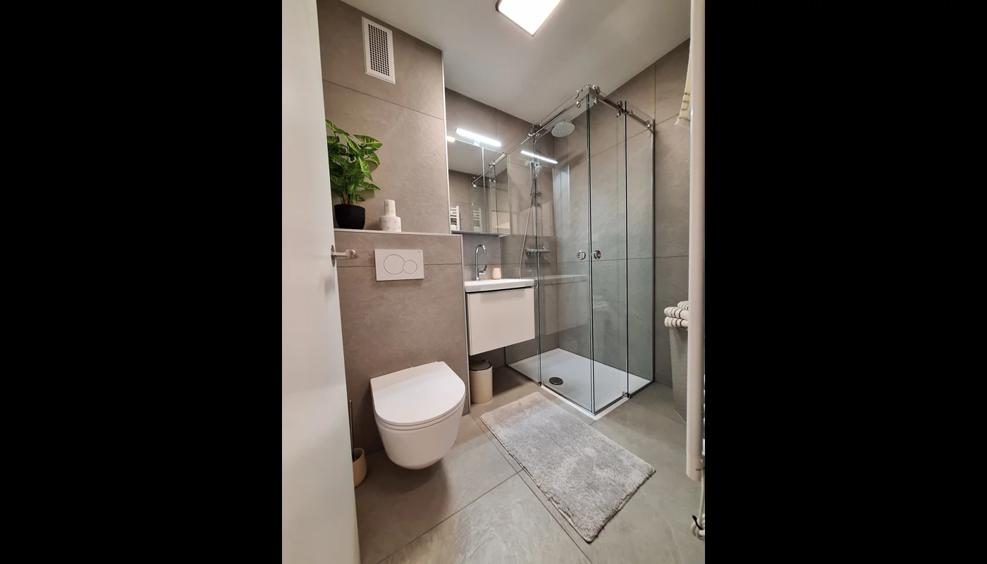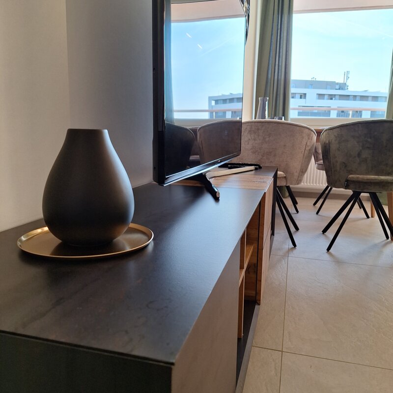 Modern flat on the 7th floor with breathtaking views. The property is west-facing and offers a perfect view of the sunset. Ideal for evening hours to enjoy the last rays of sunshine.