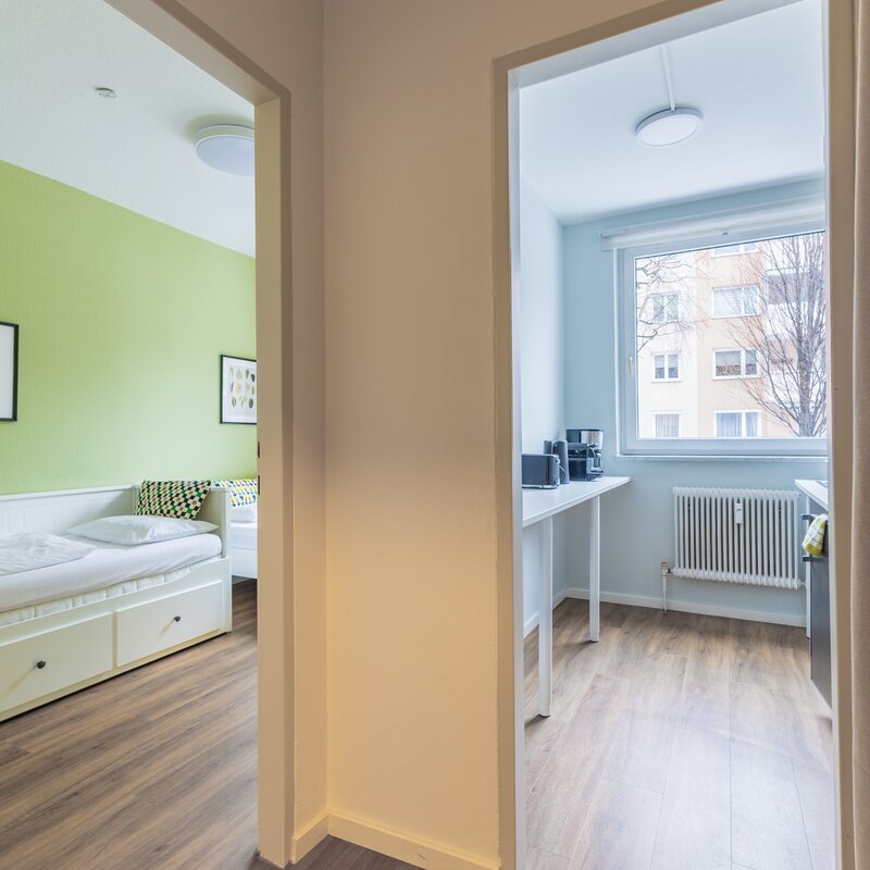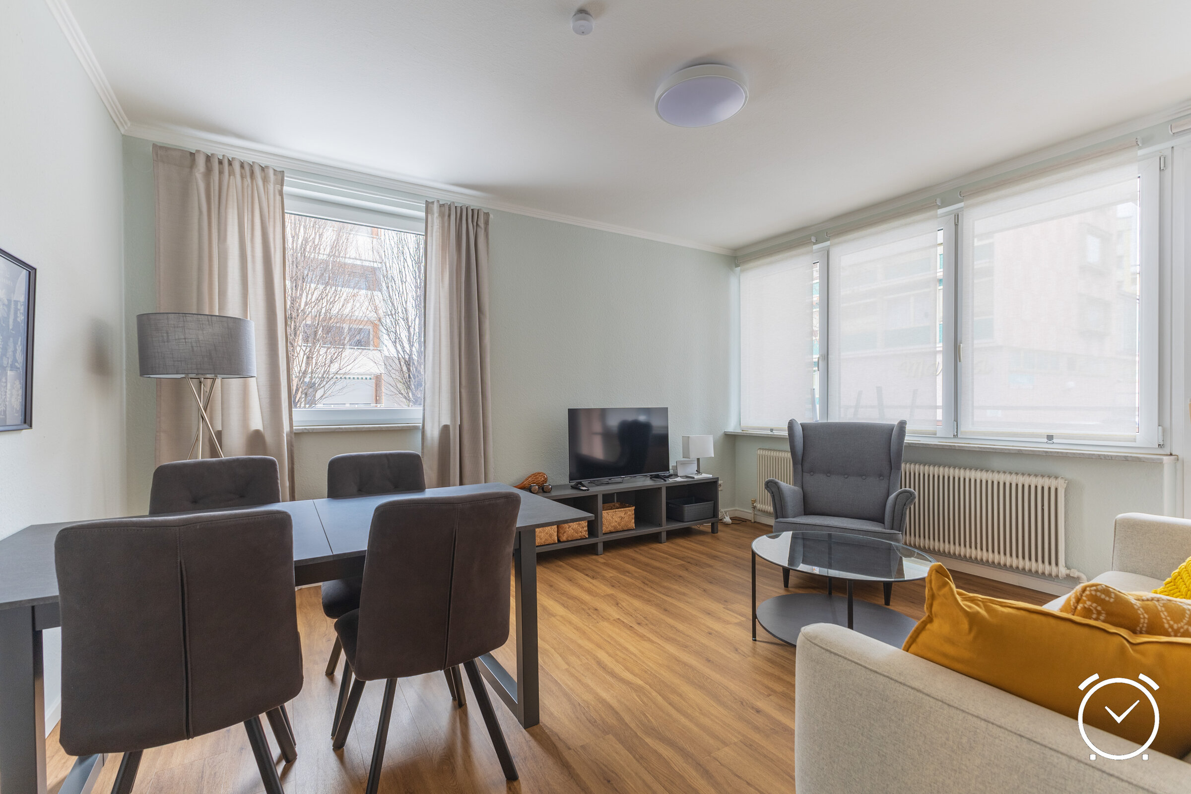 The apartment on General Arnold Street stands out thanks to its excellent infrastructure and a well-balanced combination of a quiet residential setting and close proximity to urban life. The surrounding area is characterized by well-maintained residential buildings and offers everything needed for comfortable living on a temporary basis.