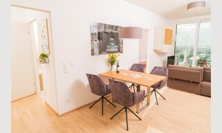 The apartments are located at Schnirchgasse 13, a 5-minute walk from the underground station Schlachthausgasse. With the underground line 3 you are in 15 minutes at Stephansplatz which is in the heart of Vienna. The apartments are located in the modern and newly built Vienna Triple Tower and you will find a cozy coffee there on the ground floor of the building.A selection of restaurants, cafés and bars can be found in the surroundings. One of our favorites, which is near from the apartment is Amon’s Gastwirtschaft, it offers delicious dishes at all times of the day and wonderful seating in a cozy dining room.