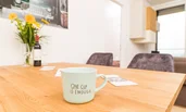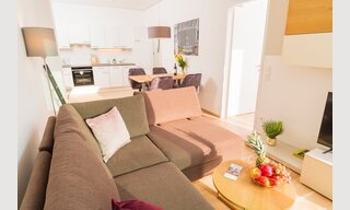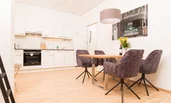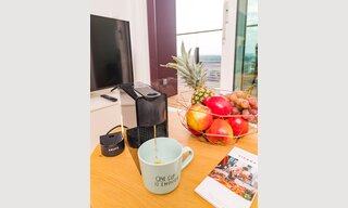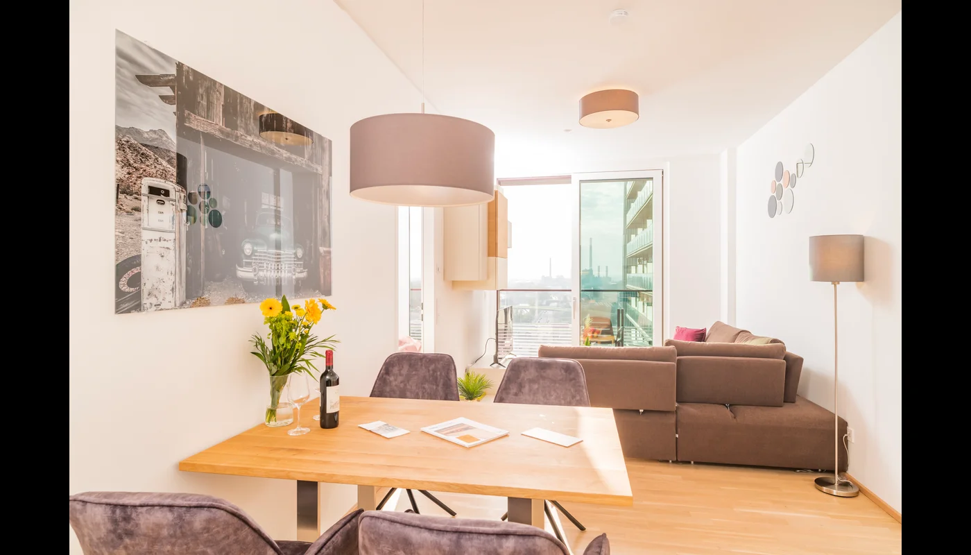 All of our luxury apartments do have a living room with a kitchenette and a dining table, where you have the possibility to prepare your own home- cooked meals, and to be enjoyed at the fining table.