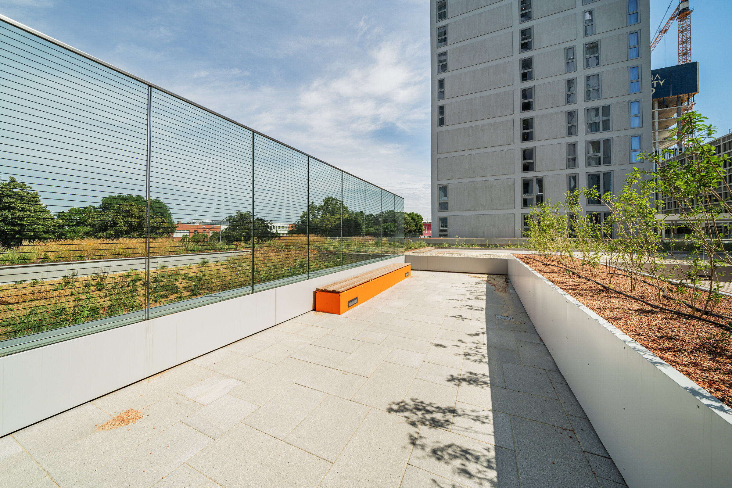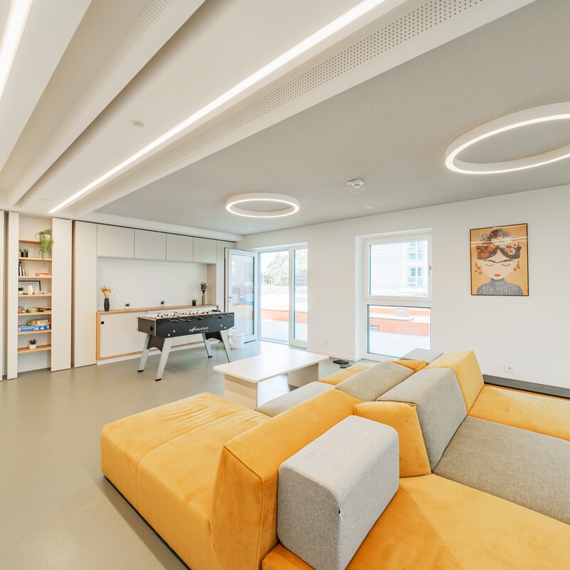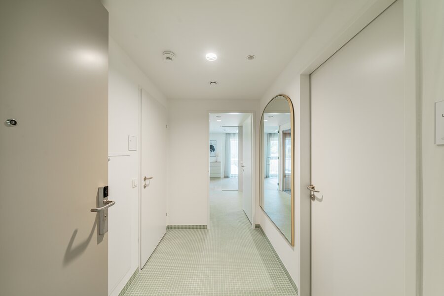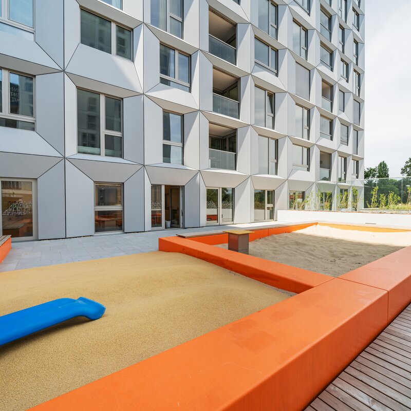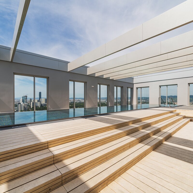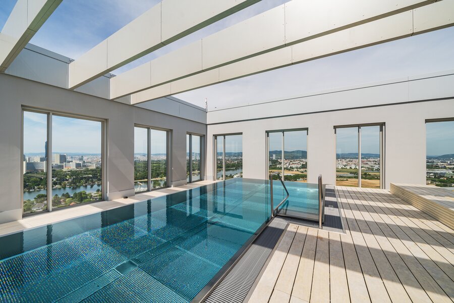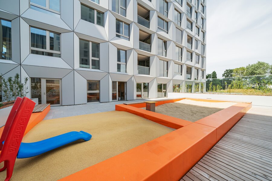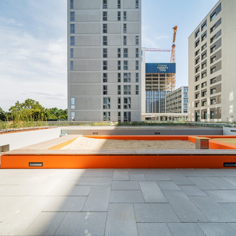 The residential tower in the new VIENNA TWENTYTWO district offers excellent accessibility from all directions with its ideal transport location directly at the underground (U1 - Kagran), tram (lines 25 & 26) and bus station Kagran, opposite the Donau Zentrum and the Cineplexx and near the Old Danube. The immediate surroundings offer a wide range of opportunities for leisure and sport as well as local recreation and shopping.