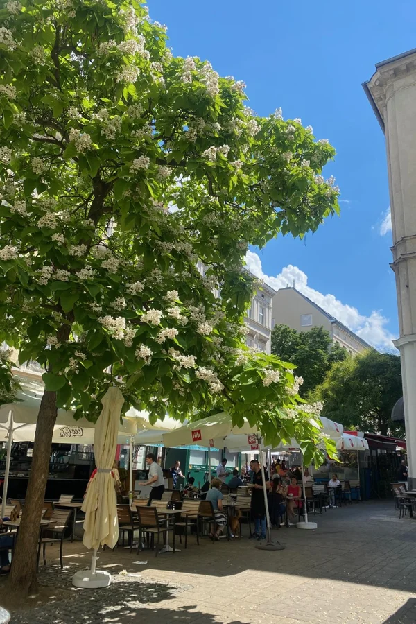Währingerstraße leads directly into Vienna's city center and offers many great shops, cafés, bars, ice cream parlors, great restaurants and a wonderful, lively market, the Kutschermarkt. The market takes place between Währingerstraße and Schulgasse, where there are also numerous food stands. On Fridays and Saturdays there is also a farmers' market with a wide range of offers up to Schopenhauerstrasse. Enjoy a glass of wine at one of the best fish restaurants in Vienna - in the open air in a vibrant, lively city.
