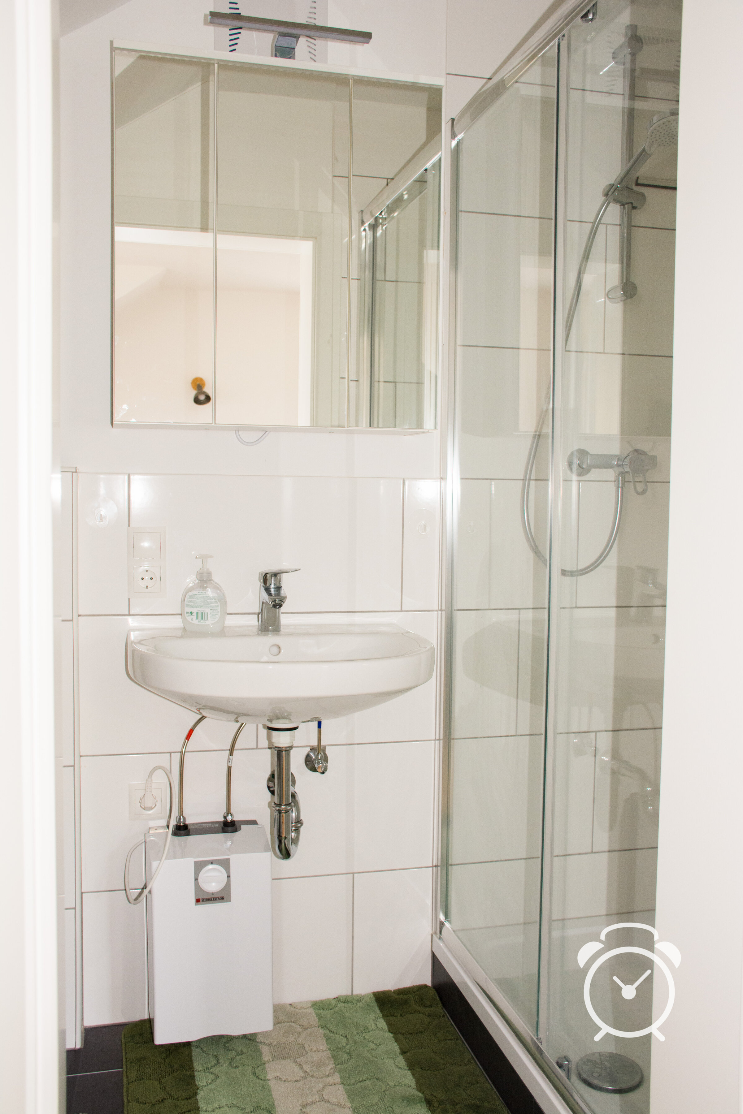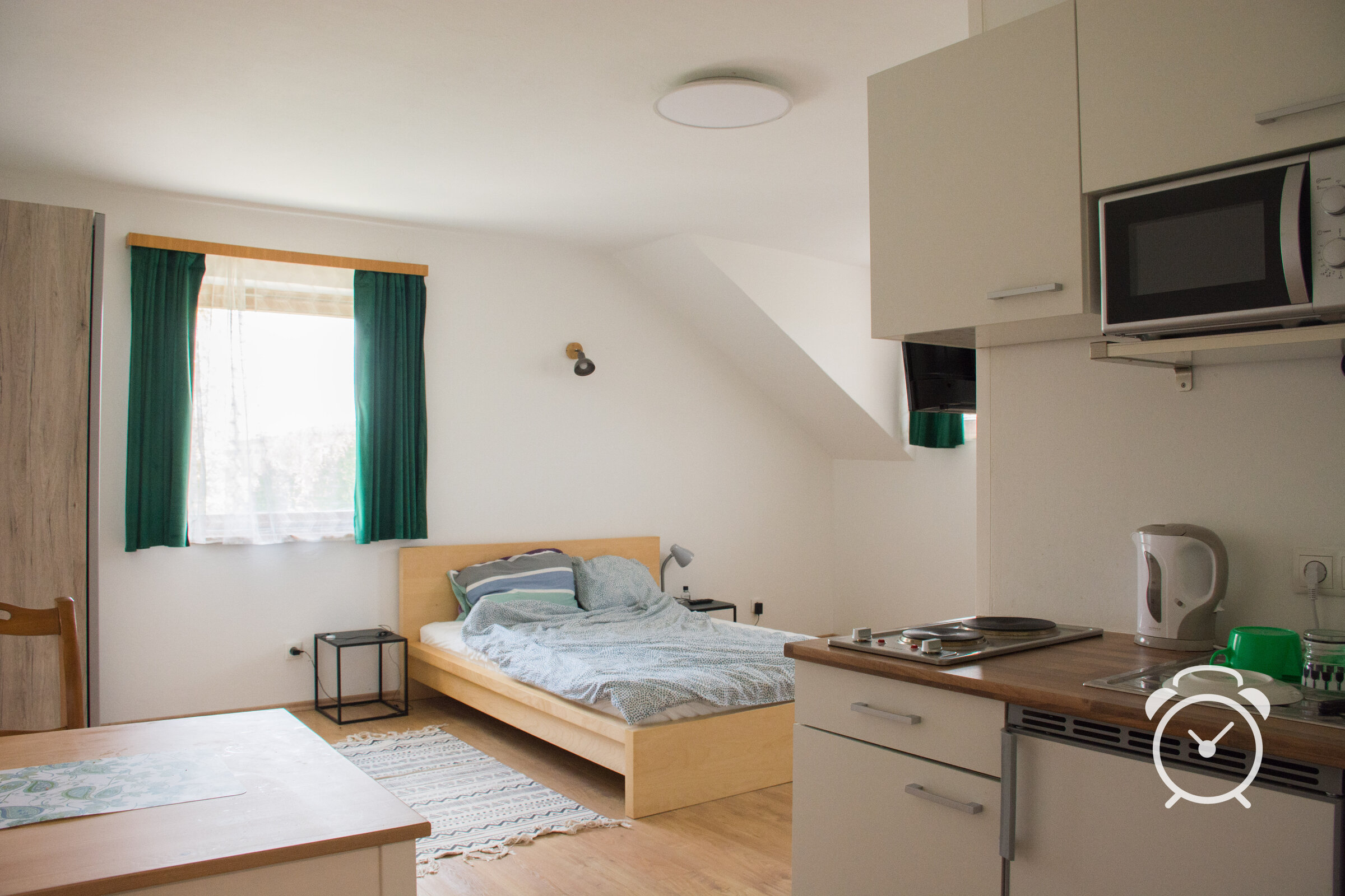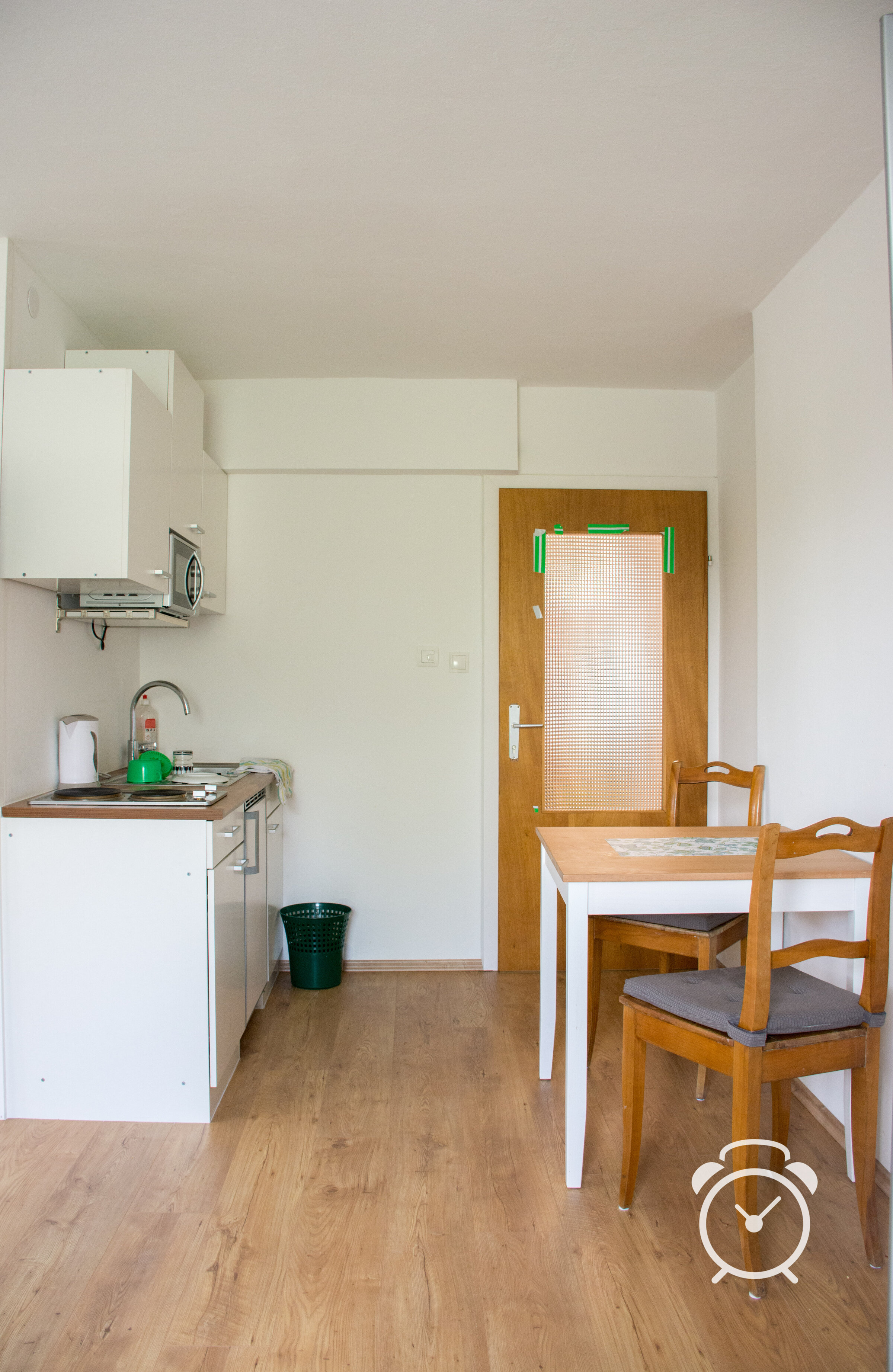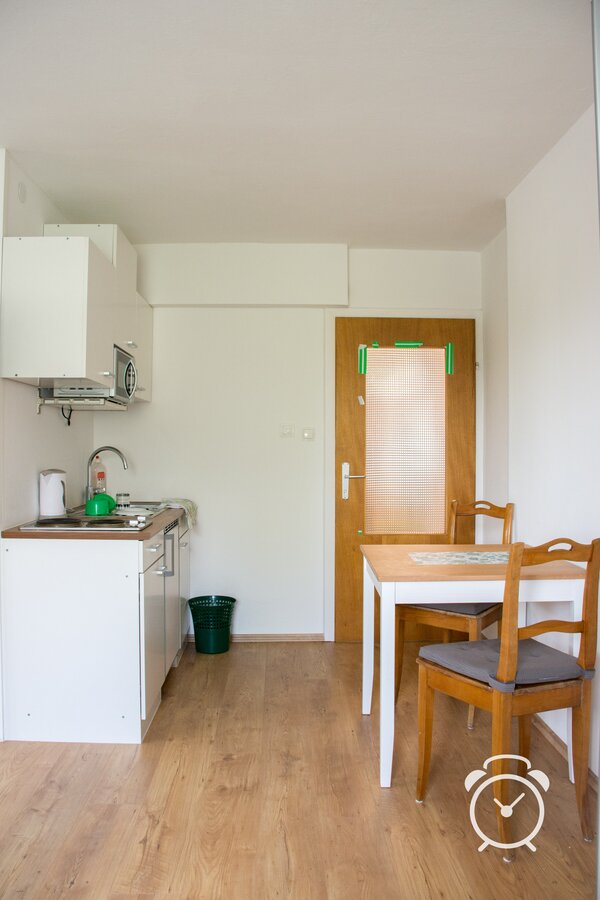 There's very good bus and train connection to Oberndorf, Bürmoos and Salzburg. The bus stop is next to the building, and it's a fifteen minutes walk to the train stop in St. Georgen. It's only 200 meters to a bistro - open from 9:00 to 22:00. The nearest supermerket is 2,5 kilometres from the building. In Bürmoos (4 km) - can be reached by train - ther's a pharmacy and there are several stores and supermarkets.